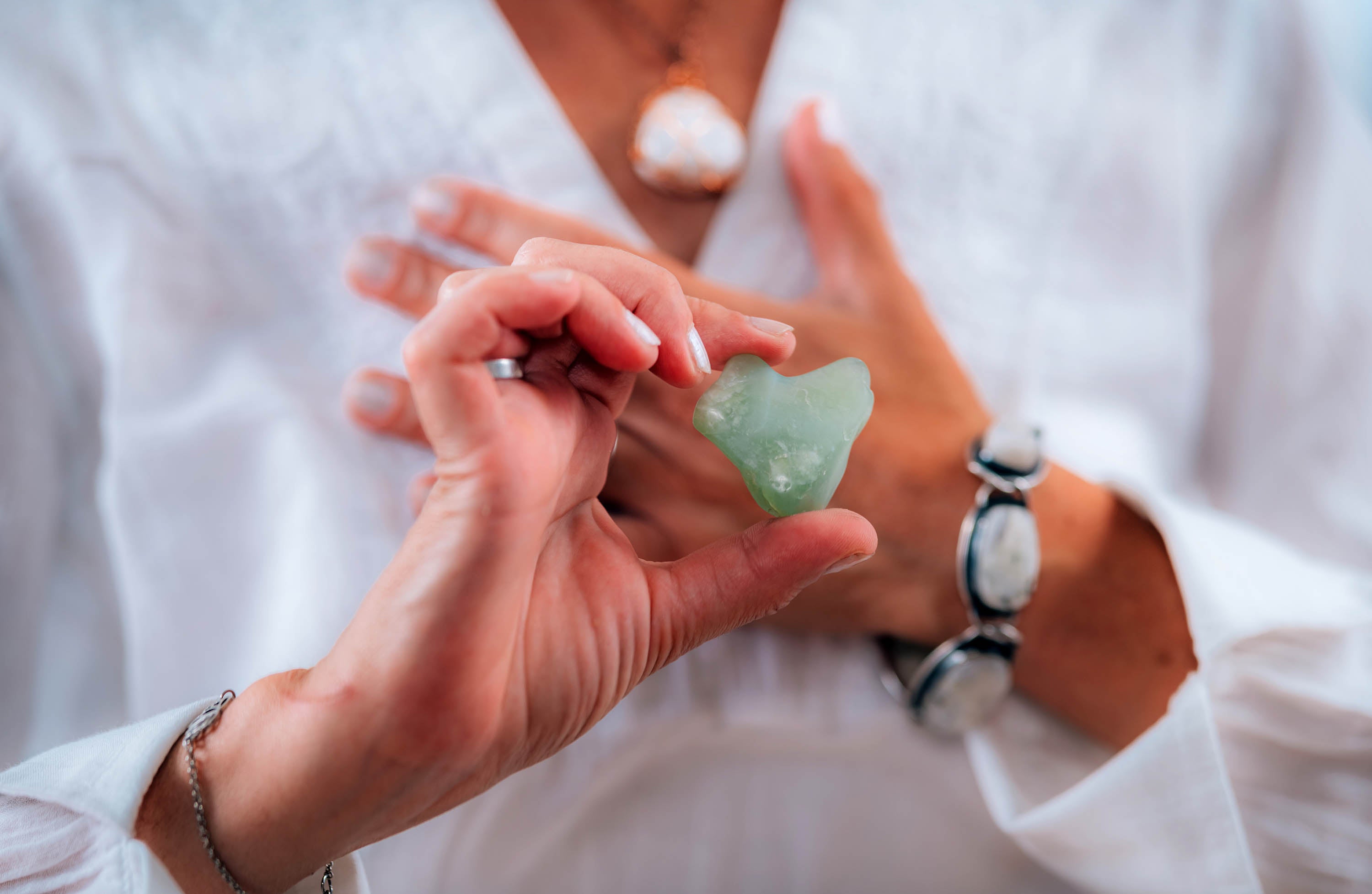 Grüner Aventurin: Dieser Stein soll besonders gut geeignet sein, um Gefühle der Liebe, des Mitgefühls und des inneren Friedens zu fördern.
