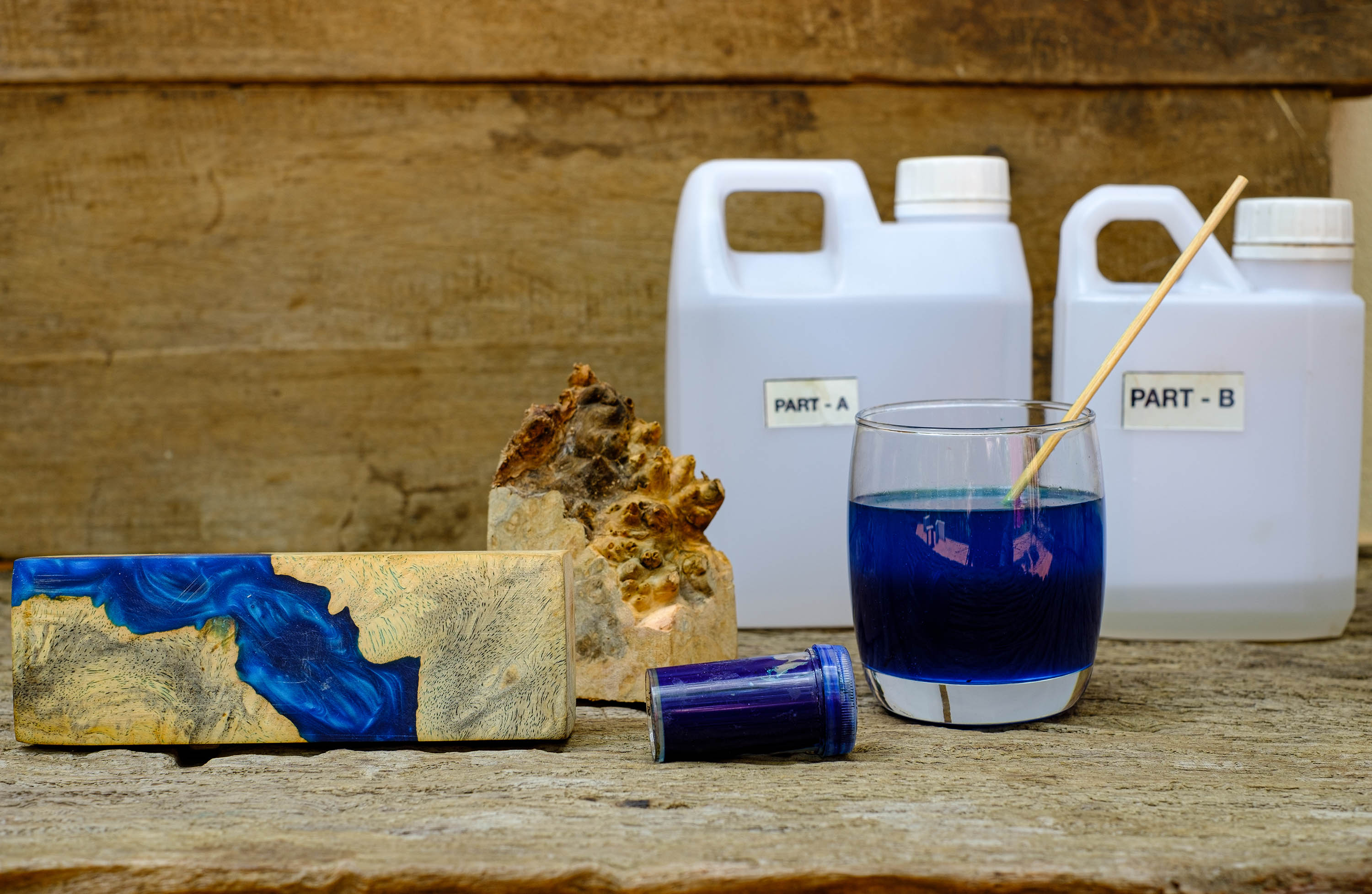 Mischen Sie das Harz: Befolge die Anweisungen auf der Verpackung des Harzes und mische es mit einem Härter. Fügen Sie dann die Metallspäne und Kristalle zu der Mischung hinzu.